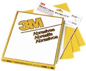 3M™ Gold Abrasive Sheet, 02536, P800 grade 3M™ Gold Paper Sheet 216U are designed with an open coat aluminum oxide abrasive in sheets of various sizes, grits, and grades. These sheets provide productivity in a wide variety of applications from express repair to large body repair. Coarser varieties are ideal for feather edging filler and putty, while finer grades work well for further refinement and primer sanding. 3M™ Gold Abrasives are the standard that shops have turned to for quality, performance and durability for over 25 years. Our Gold Abrasives are precision coated with high quality minerals and resins to deliver longer-lasting abrasives that cut through a variety of surfaces - including paint, primer, fiberglass, metal and SMC. 3M™ Gold Abrasives produce uniform, consistent finishes. When job quality and productivity matter most, turn to the abrasives that shops have relied on year after year. 3M™ Gold Paper Sheets are made of long-lasting aluminum oxide abrasive grains on a light A-weight paper backing suitable for lightweight hand sanding and finishing. The open coat and load-resistant coating help prevent loading for longer use, and help produce a smooth, consistent finish. Hand finishing is frequently used in a variety of applications to produce a fine finish. Loading occurs when material clogs the surface of the sanding paper and the abrasive points, which can quickly make the sheet ineffective. Open coat construction means the abrasive grains are spaced so that dust and debris can collect in the spaces rather than loading the sheet. Additionally, the open coat feature provides a more aggressive cut than a comparable closed coat abrasive of the same grade, for faster results. Suggested Applications - Wet sanding - Fine featheredging - Final sanding step before priming - Convenient sheet form available in a variety of sizes, grits, and densities - Aluminum oxide mineral is durable, cuts fast, and performs well on many surfaces - A-weight light paper backing is suitable for hand sanding and finishing applications - Open coat construction provides a more aggressive cut and minimizes dust clogging on the abrasive for increased productivity - Load-resistant coating helps prevent premature loading of the sheet surface to maximize cut and extend the life of the abrasive grains