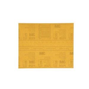 3M™ Gold Abrasive Sheet, 02541, P320 grade 3M™ Gold Paper Sheet 216U are designed with an open coat aluminum oxide abrasive in sheets of various sizes, grits, and grades. These sheets provide productivity in a wide variety of applications from express repair to large body repair. Coarser varieties are ideal for feather edging filler and putty, while finer grades work well for further refinement and primer sanding. 3M™ Gold Abrasives are the standard that shops have turned to for quality, performance and durability for over 25 years. Our Gold Abrasives are precision coated with high quality minerals and resins to deliver longer-lasting abrasives that cut through a variety of surfaces - including paint, primer, fiberglass, metal and SMC. 3M™ Gold Abrasives produce uniform, consistent finishes. When job quality and productivity matter most, turn to the abrasives that shops have relied on year after year. 3M™ Gold Paper Sheets are made of long-lasting aluminum oxide abrasive grains on a light A-weight paper backing suitable for lightweight hand sanding and finishing. The open coat and load-resistant coating help prevent loading for longer use, and help produce a smooth, consistent finish. Hand finishing is frequently used in a variety of applications to produce a fine finish. Loading occurs when material clogs the surface of the sanding paper and the abrasive points, which can quickly make the sheet ineffective. Open coat construction means the abrasive grains are spaced so that dust and debris can collect in the spaces rather than loading the sheet. Additionally, the open coat feature provides a more aggressive cut than a comparable closed coat abrasive of the same grade, for faster results. Suggested Applications - Wet sanding - Fine featheredging - Final sanding step before priming - Convenient sheet form available in a variety of sizes, grits, and densities - Aluminum oxide mineral is durable, cuts fast, and performs well on many surfaces - A-weight light paper backing is suitable for hand sanding and finishing applications - Open coat construction provides a more aggressive cut and minimizes dust clogging on the abrasive for increased productivity - Load-resistant coating helps prevent premature loading of the sheet surface to maximize cut and extend the life of the abrasive grains