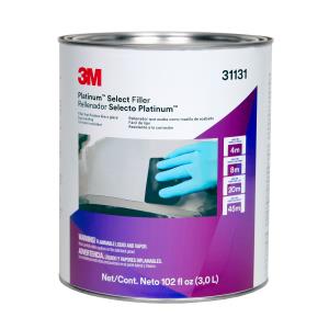 3M™ Platinum™ Select Filler features a super creamy formula that greatly reduces pinholes, and reduces primer usage up to 30% vs. traditional lightweight body fillers. It delivers extreme adhesion to properly prepared steel, galvanised steel, aluminium, e-coat, SMC, FRP and more. Filler is stain free and tack free, ideal for nearly all base coat/clear coat and waterborne paint systems.