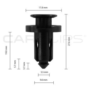 Subaru; These are fitted to a few different Subaru models and used to fasten bumpers, radiator grilles, side skirts and underbody shields. The clip is a simple push fit rivet that expands and locks when the centre pin is pushed through.