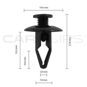 Very popular Scrivet clip. Typically used on loose fitting panels and these are commonly used on some cars to attach wheel arch linings, splashguards and other protective panels. Most often used on the Inner fender area.