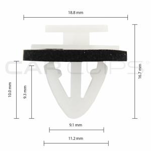 Used as a rocker cover, side moulding, grille and boot liner clip