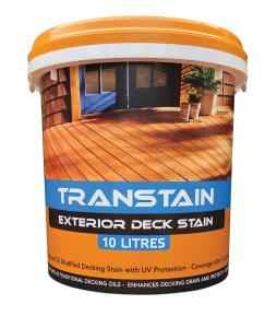 Transtain is a water-based; oil modified polyurethane stain formulated for all types of timbers including exterior decking. The penetrating semi-transparent finish delivers excellent UV resistance combined with water repellence and anti-mold properties. Based on European technology, Transtain conforms to EU Directive 2004/42/EC Phase2 with less than 30gms/litre of VOC.