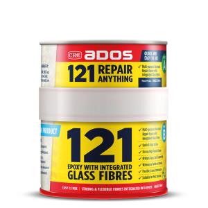 The revolutionary new way to make repairs. ADOS 121 is an epoxy polymer with glass fibres already integrated into the hardener – making use so easy. All the advantages of traditional fibre glassing with none of the disadvantages. Easy 1:1 mixing, strong and flexible, bridges gaps, waterproof and can even be applied in the wet to almost any surface including polystyrene. ADOS 121 is the revolutionary new way to make repairs to anything.