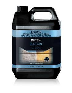 CUTEK® Restore 4L Code: 490043 CUTEK® Restore is a powerful timber cleaning agent that restores stained, weathered and grey wood back to its original appearance. CUTEK® Restore is effective in removing stubborn stains caused by tannins, water, iron, resins, mould and fungus. It also removes the common invisible glaze (mill glaze) to prepare newly sawn or machined timber for coating. CUTEK® Restore will brighten, clean and restore wood to look like new, ready for CUTEK® Extreme CD50. Features: POWERFULLY RESTORES TIMBER: Brings weathered, greyed/silvered wood back to original appearance REMOVES STUBBORN STAINS: Such as iron stains, water marks, tannins, resins, mould and fungus PREPARES NEW TIMBER FOR COATING: Removes common invisible glaze (‘mill glaze’) from newly sawn timber or machined timber Typical Uses: - Restoration of stained or high traffic areas such as decks, marine jetties, boardwalks, etc. - Rejuvenation of external and weather affected or greyed timber such as decking, cladding, fences, shingles, etc. CUTEK® Restore will not remove paint and wood coatings from your timber. In these instances, remove with CUTEK® Wood Stripper.