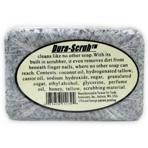 Dura-Scrub - Heavy Duty Soap Bar with Built in Scrubber Code: AF4408S When body working a project, cleanliness is important. A paint job can be compromised by containments. Grease and oils, especially those from that juicy lunchtime burger can end up on freshly prepared surface. Now scrubbing and soaping can be done in one easy process. Dura-Scrub cleans like no other. This is a professional hand soap with a special scrubbing pad built into every bar.