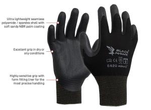 Black Hawk glove, black polyamide with black foam nitrile coating