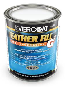 Feather Fill® G2, Gallon - Gray Code: 100713 A high-build, high-solids Premium Polyester Primer Surfacer that is compliant with California and National Rule VOC regulations. It has been specifically developed to work with 1K and 2K etch primers, while offering exceptional flow and leveling. Other features include smooth spraying, easy sanding, fast dry-to-sand time and a shrink-resistant formula.