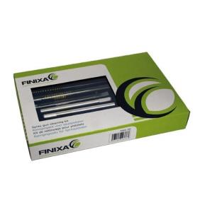 The set consists out of 8 brushes for cleaning the interior, 3 small brushes with holder and one large brush for the exterior, 6 needles with holder for cleaning the nozzle and a bottle of lubricant to maintain the moving parts.