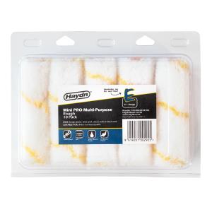 Haydn 100mm Mini Gold Stripe Sleeve 10Pk Code: PA100SLEEVE10G Haydn 100mm Mini Gold Stripe Roller Sleeves retain paint well and can be used with both oil and water based paints. They are ideal for use on rough plaster, brick work, stucco, trellis and block work. Perfect for small jobs and/or difficult areas to get to that require a nice, clean finish. Use with Haydn mini roller handles and trays. - Multi purpose rag roller sleeve with gold stripe - Size 100mm long - 10Pk - Suitable for water and oil based paint - Used for rough plaster, brick work, stucco, trellis and block work - Use with Haydn mini roller handles and trays