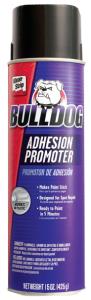 Bulldog® Adhesion Promoter Aerosol Code: ETP0123B Bulldog® Adhesion Promoter is designed to promote paint adhesion to all automotive surfaces, even problem plastics. It works equally well on all flexible or rigid plastics, fiberglass, aluminum, glass, chrome, vinyl, galvanized metal, and painted surfaces. Bulldog acts as a tie coat by allowing several different surfaces to be painted at the same time to assure a smooth, flawless, durable finish every time. The convenient one-component aerosol is perfect for spot repairs and dries in 5 minutes.