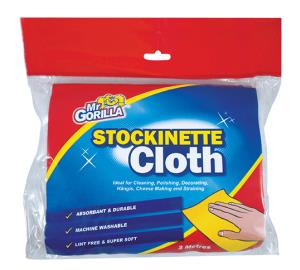 Mr Gorilla Stockinette Multi-Purpose Cloth 3m Code: 01501 Ideal for cleaning, polishing, decorating, Hangis, cheese making and straining. Features and Benefits: - Absorbent and durable - Machine washable - Lint free and super soft