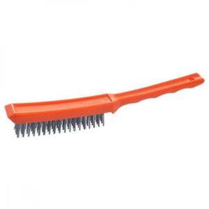 4 row steel scratch brush red plastic handle Code: 00210013481 Wire brush Ideal for general purpose use in light deburring, cleaning and removing rust. Most popular scratch brushes throughout New Zealand and Australia - Comfortable grip - Great performance - Durable