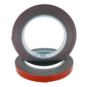 Double-Sided 1.1mmTH Permanent High Bond Tape from Pomona Liner: Red Polyethylene Film Adhesive: Dark Grey Foamed Acrylic