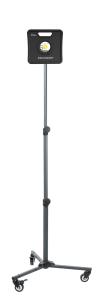 The 3 wheels are sturdy and of high quality and roll easily even on uneven surfaces. 2 of the wheels are lockable to secure a safe and fixed position. The SCANGRIP WHEEL STAND is made of durable and sturdy powder coated steel for both indoor and outdoor use.