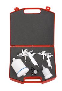 Spray Gun Gravity SET 125-10G / 2000-13G Code: MACH2-SET HVLP set with regulator in blowmould case. - 600ml cup gun with 1.3mm set up - 250ml cup gun with 1.0mm set up