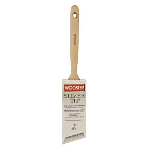 Silver Tip® 5221 Angle Sash 50mm Code: 15534-4 Mae with CT™ polyester filaments for excellent leveling & smoothing. Wooster Silver Tip brush range is one of the most popular brushes used by trade painters throughout New Zealand. The Silver Tip features very soft bristles for fine finish that virtually eliminates all brush strokes. Excellent to applying enamels to metal, smoothing varnish on polyurethane, wood and leveling water based paints. Wooster Silver Tip brushes are available in flat sash, angle sash, varnish and wall brush handle options. 25, 38, 50, 65 and 75mm sizes. - Smoothest Finish - High Production - Good Control Style: Angle Firmness: Soft Handle: Sash Size: 2" (50mm) Length: 2-11/16" (68mm) Thickness: 9/16" (14mm)