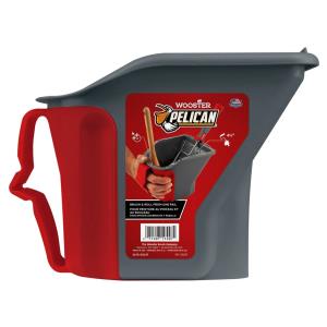 Wooster Pelican Hand Held Pail Code: 8619 - Brush & roll from one pail - Grid for 4-1/2" minirollers - Magnetic brush holder - Liners are form fitting & eliminate cleanup - Lid keeps paint wet and reduces spills
